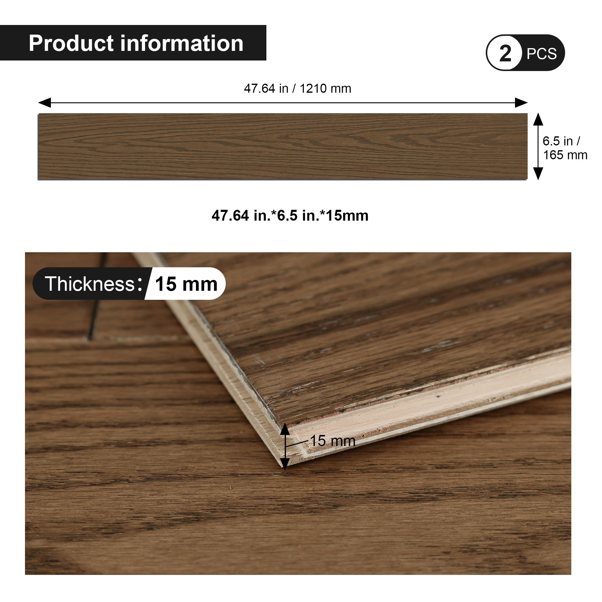 Durable tongue and groove engineered hardwood flooring panels, 0.59″ thick, 47.64″ long, 6.5″ wide, sold in 2-pack sets for premium flooring solutions.