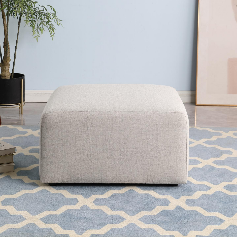 Elegant beige ottoman offering comfortable support and versatile use in any living space. Durable design with neutral color.