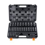 This 34-piece 1/2″ drive deep impact socket set includes metric sizes ranging from 8mm to 36mm, designed for high-performance automotive repair tasks. Crafted from chromium-molybdenum (Cr-Mo) alloy steel, the sockets feature a 6-point configuration that ensures a secure grip on fasteners and enhances torque application. The rugged construction guarantees durability and resistance to wear under demanding conditions. The set comes complete with a heavy-duty storage case for organized tool management and portability.