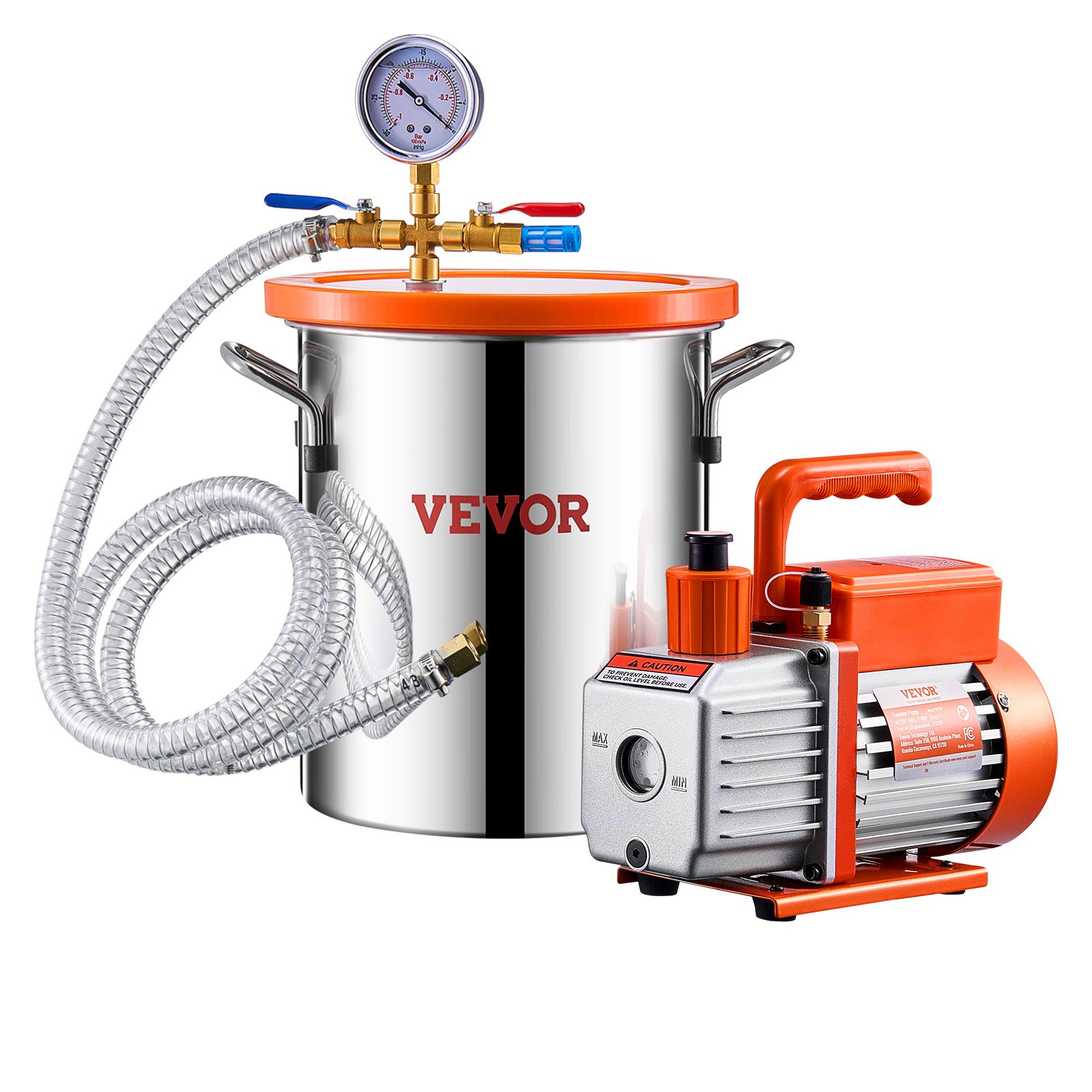 This 1.5 gallon vacuum chamber kit includes a 3.5 cubic feet per minute (CFM) single stage vacuum pump, engineered for efficient degassing and vacuum processing. The chamber is constructed from high-quality materials to ensure durable operation and optimal vacuum retention. Ideal for applications such as resin casting, silicone degassing, and bubble removal, this kit provides reliable performance and ease of use. The vacuum pump delivers consistent suction power to create and maintain a strong vacuum environment within the chamber, facilitating effective air removal. Suitable for both professional and hobbyist use, this vacuum chamber set offers a compact and convenient solution for precise vacuuming tasks.