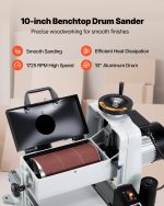 High-performance 10″ benchtop drum sander with 1HP motor, variable speed, and dust collection port for precise woodworking and furniture finishing.
