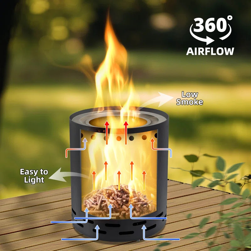 This 10-inch smokeless tabletop fire pit provides a convenient and clean source of warmth suitable for patios and outdoor camping. Its compact size allows for easy portability and placement on any table, enhancing outdoor ambience without producing smoke. Designed to deliver a cozy fire experience, this mini fireplace operates smokelessly, reducing soot and odors. Ideal for intimate outdoor settings, it combines functionality with modern design to complement any outdoor décor while ensuring a safe, enjoyable fire pit experience.