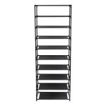 Durable 10-tier stackable shoe rack with stainless steel frame stores up to 50 pairs; ideal for hallways, closets, bedrooms, and garages.