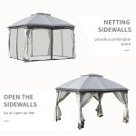 This 10′ x 12′ outdoor gazebo provides ample space for backyard gatherings and relaxation. Constructed with a robust metal frame, it offers excellent stability and durability. The weather-resistant canopy shields against sun and rain, ensuring protection throughout various seasons. Its elegant design complements any outdoor setting, making it ideal for patios, gardens, and outdoor events. The gazebo is easy to assemble and maintain, delivering a practical and stylish solution for outdoor living.