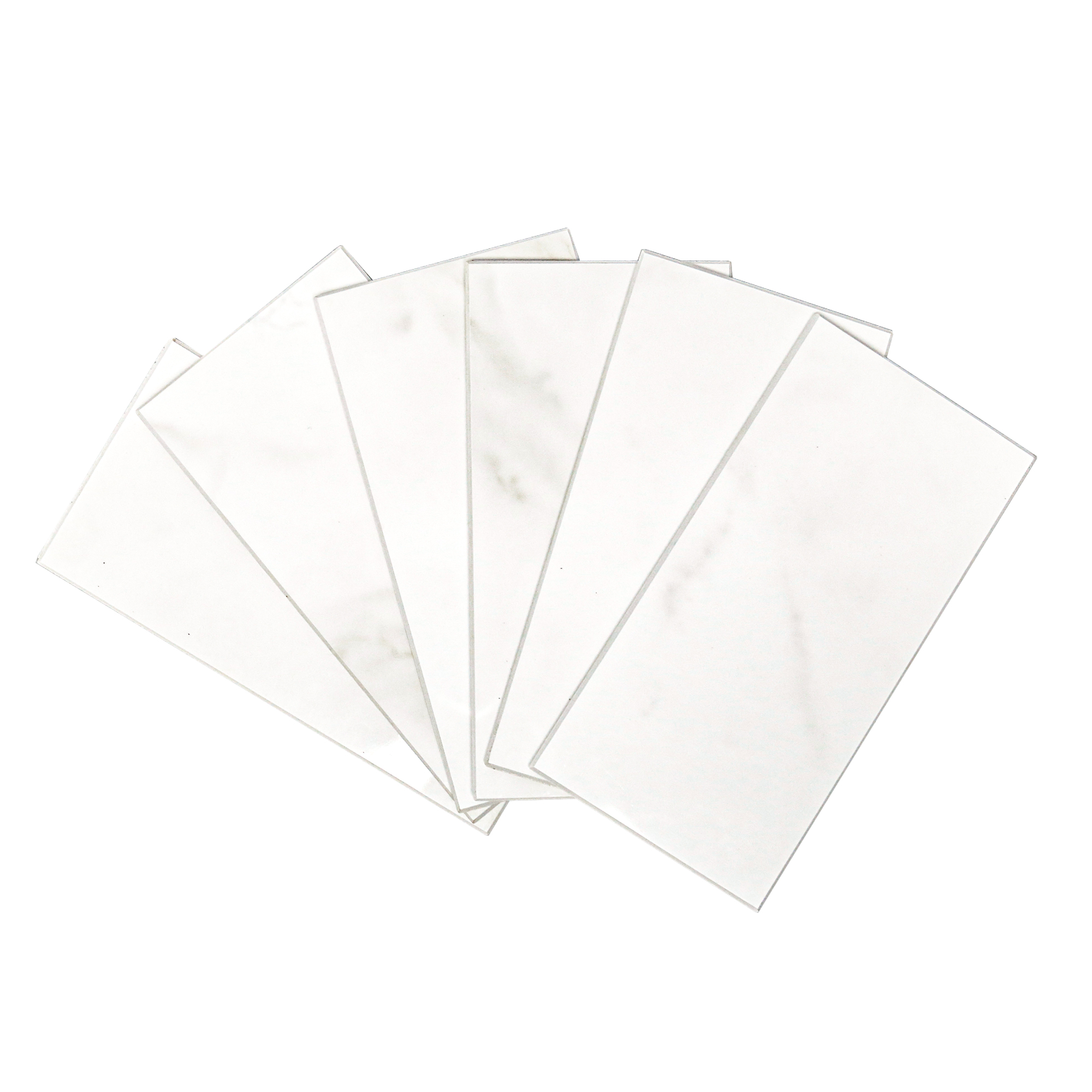 Durable 100-piece white PVC peel and stick subway tiles measuring 3 x 5.9 inches, covering 12 sq. ft., ideal for easy backsplash installation.