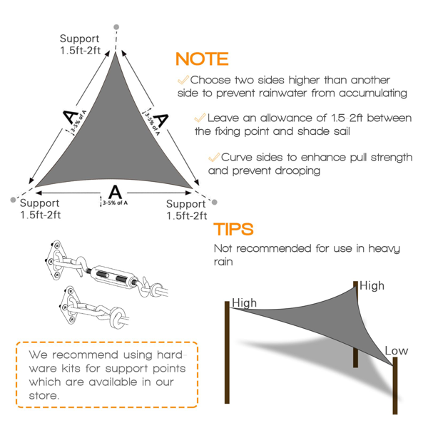This 10’x10’x14′ sunshade sail is crafted from high-density polyethylene (HDPE) in a dark grey hue, designed to offer reliable UV protection and enhance outdoor comfort. The mesh fabric allows for optimal airflow while blocking harmful sun rays, reducing heat underneath. Its sturdy construction ensures long-lasting durability against various weather conditions. Ideal for patios, gardens, or recreational areas, the sunshade sail creates a shaded environment suitable for extended outdoor use. The dimensions provide ample coverage, making it suitable for various settings and installation configurations.