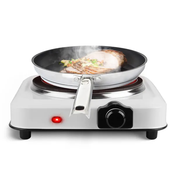 This 1200W electric infrared single burner hot plate features a 7.5-inch glass cooktop designed for efficient and even heat distribution. Its portable and compact design makes it ideal for use in homes, RVs, or camping settings. The stepless temperature adjustment allows precise control of heat levels to suit various cooking needs, enhancing usability and safety. Constructed for durability and ease of cleaning, the hot plate provides reliable performance on countertops or other stable surfaces.