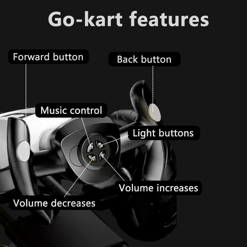 5.【Add riding skill to children and learn from playing】This go-kart car is equipped with music and flashing light devices.Accompanied by music and lights,the child can drive the kart forward or backward by controlling the pedals, converting the direction and adjusting the speed through the steering wheel and steering wheel, which bring the child a real and interesting driving experience.