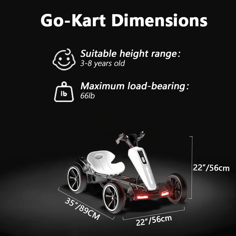 4.【2-Position Ajustable Seat】 This go-kart go kart is crafted for 3 to 8 years old little beginners for it’s simple and easy to use.And the go-kart comes with a 2-point adjustable seat to accommodate children in different heights. Even better, the ergonomically designed high back seat fits the curves of the child’s body, providing the most comfortable sitting experience and alleviating the fatigue of the child’s long driving hours.