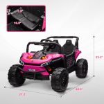 Roll in the fun with the Qaba 12V kids’ ride-on truck. This ride-on car is a thrill seeker’s dream. It has dual motors for up to 50 minutes of fun and spring suspension wheels that glide smoothly across any surface. Our kid’s car includes a remote control for parental control. It’s a versatile ride, built for a safe yet thrilling time. Features: – This 12V kids UTV features two motors for 50 min continuous fun – Spring suspension on all four wheels ensures a smooth ride – It’s suitable for grass, cement, asphalt, brick, and gravel roads – Manual driving or remote control driving is available – It includes music, a horn, and light strips for a realistic drive – The power indicator helps monitor battery life to keep recharging timely – Assembly required Specification: – Color: Pink – Materials: Plastic, Steel – Overall Dimensions: 40.6″ L x 27.2″ W x 23.2″ H – Seat Size: 16.5″ W x 7.9″ D – Seat Height: 12.6″ H (to floor) – Wheels Size: Dia. 10.2″ – Remote Distance: 49.2′ L – Speed: 1.9-3.7 mph – Battery: 12V 4.5AH – Motor: 2 x 12V, 35W – Charging Time: 12 hours(First). 8-12 hours(Regular) – Run Time: 50 min – Weight Capacity: 55 lbs. – Qualified Age: Over 3 years old – Recommended Age: 3-5 years old – Seat Capacity: 1 Rider – Item Label: 370-348V80PK – Note 1: Always monitor your children while they are riding – Note 2: Require 2 x AAA batteries for remote (not included) Package Includes: – 1 x Kids Electric Car – 1 x Remote – 1 x Manual Roll in the fun with the Qaba 12V kids’ ride-on truck. Features: – This 12V kids UTV features two motors for 50 min continuous fun – Spring suspension on all four wheels ensures a smooth ride – It’s suitable for grass, cement, asphalt, brick, and gravel roads – Manual driving or remote control driving is available – It includes music, a horn, and light strips for a realistic drive – The power indicator helps monitor battery life to keep recharging timely – Assembly required Specification: – Color: Black – Materials: Plastic, Steel – Overall Dimensions: 40.6″ L x 27.2″ W x 23.2″ H – Seat Size: 16.5″ W x 7.9″ D – Seat Height: 12.6″ H (to floor) – Wheels Size: Dia. – Qualified Age: Over 3 years old – Recommended Age: 3-5 years old – Seat Capacity: 1 Rider – Item Label: 370-348V80BK – Note 1: Always monitor your children while they are riding – Note 2: Require 2 x AAA batteries for remote (not included) Package Includes: – 1 x Kids Electric Car – 1 x Remote – 1 x Manual Roll in the fun with the Qaba 12V kids’ ride-on truck. Features: – This 12V kids UTV features two motors for 50 min continuous fun – Spring suspension on all four wheels ensures a smooth ride – It’s suitable for grass, cement, asphalt, brick, and gravel roads – Manual driving or remote control driving is available – It includes music, a horn, and light strips for a realistic drive – The power indicator helps monitor battery life to keep recharging timely – Assembly required Specification: – Color: Blue – Materials: Plastic, Steel – Overall Dimensions: 40.6″ L x 27.2″ W x 23.2″ H – Seat Size: 16.5″ W x 7.9″ D – Seat Height: 12.6″ H (to floor) – Wheels Size: Dia. – Qualified Age: Over 3 years old – Recommended Age: 3-5 years old – Seat Capacity: 1 Rider – Item Label: 370-348V80BU – Note 1: Always monitor your children while they are riding – Note 2: Require 2 x AAA batteries for remote (not included) Package Includes: – 1 x Kids Electric Car – 1 x Remote – 1 x Manual.