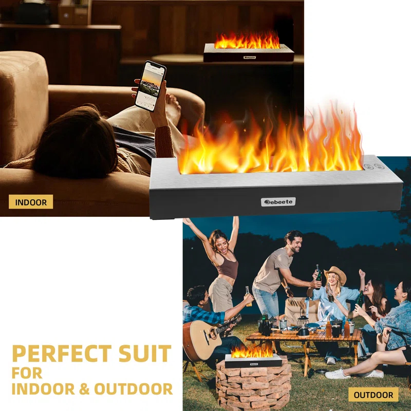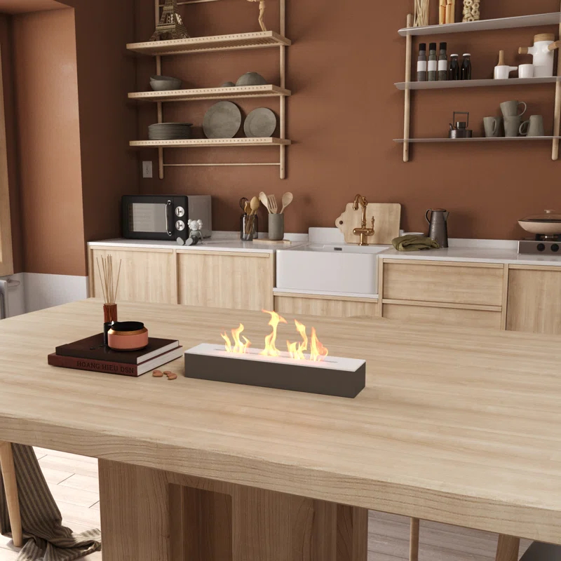 This 13.7-inch by 2.1-inch black bioethanol fireplace is constructed from durable glass and metal materials, ensuring both style and longevity. Designed for smokeless operation, it provides an efficient and clean flame suitable for both indoor and outdoor environments. Its compact tabletop size makes it a versatile addition to any living space or patio, delivering warmth and ambiance without smoke or soot.