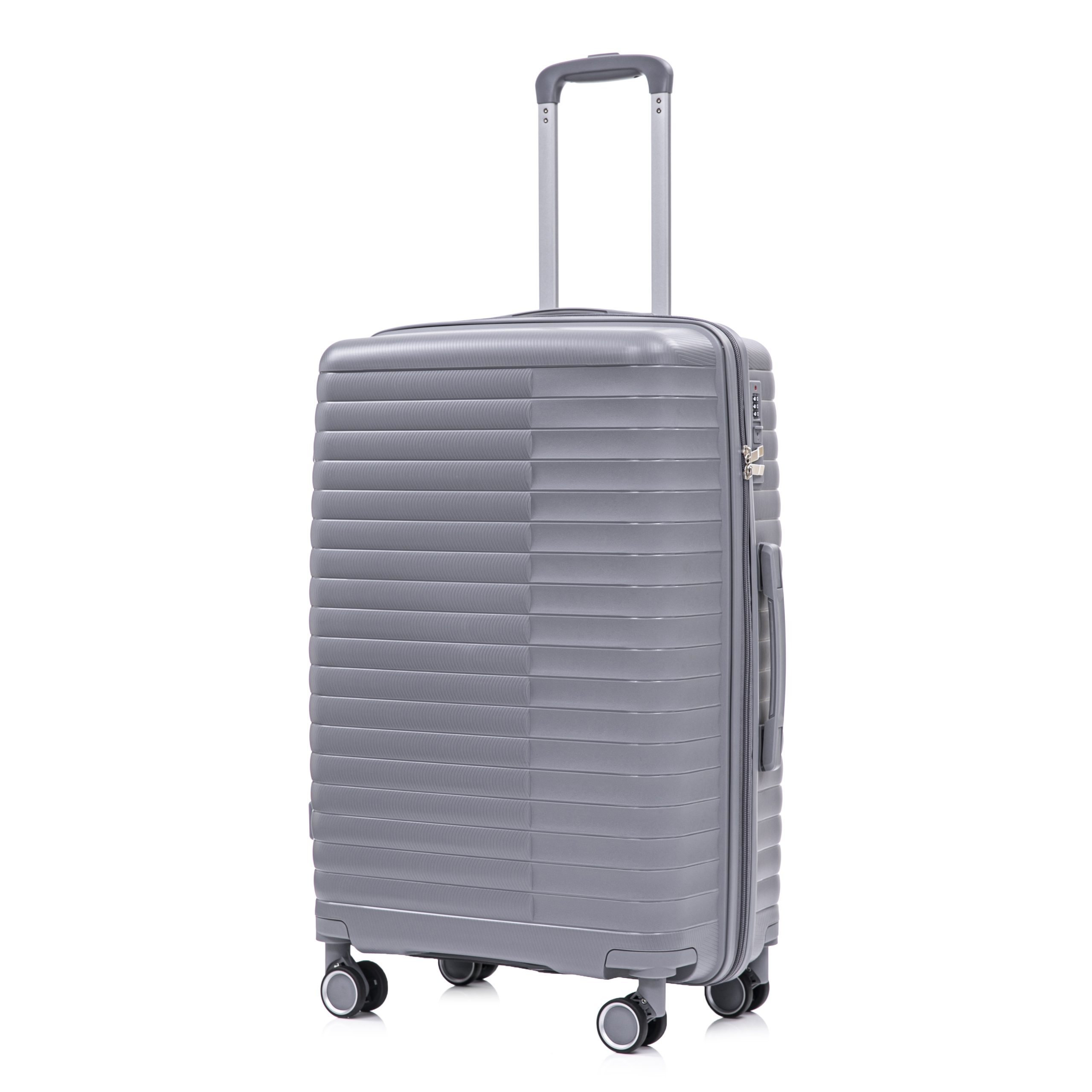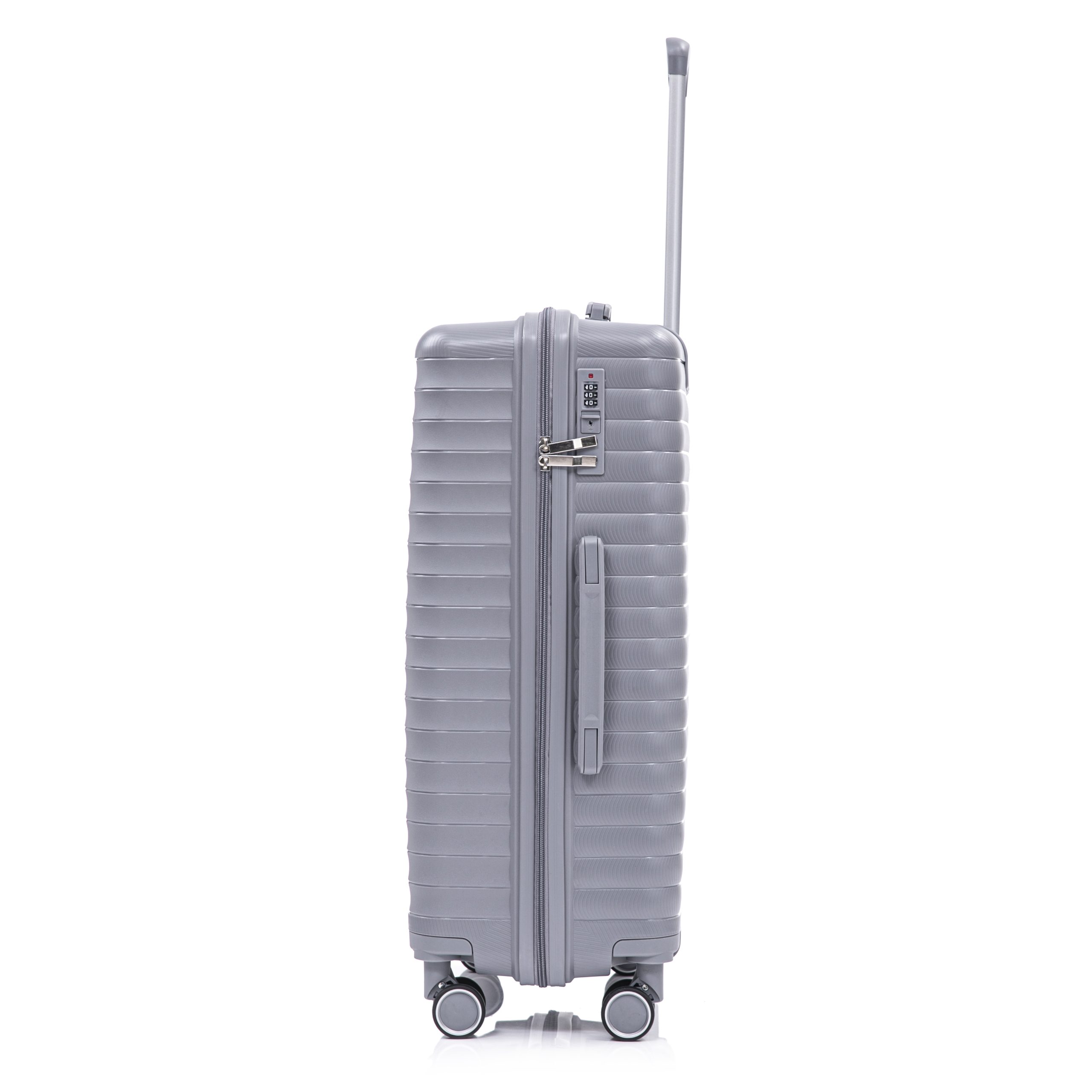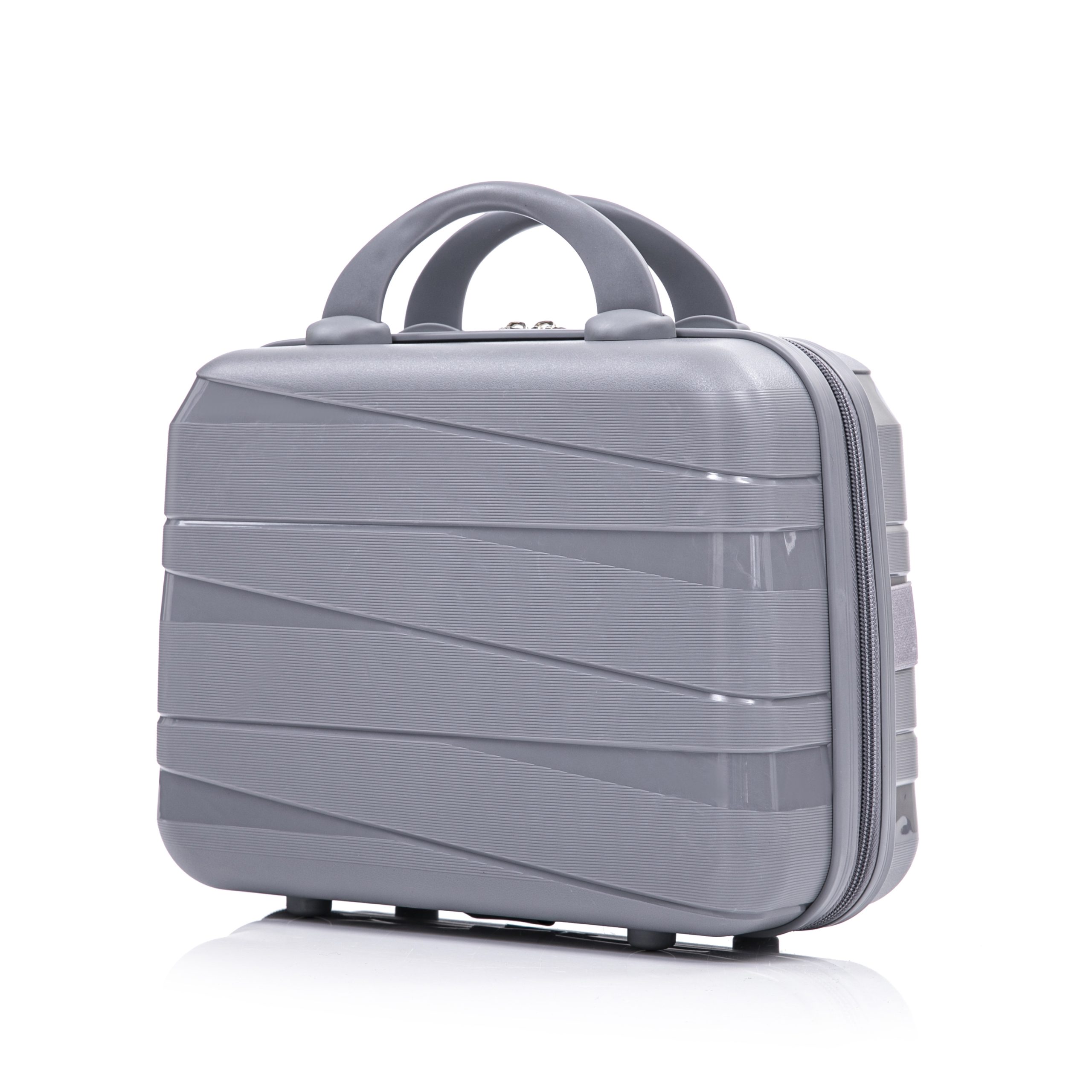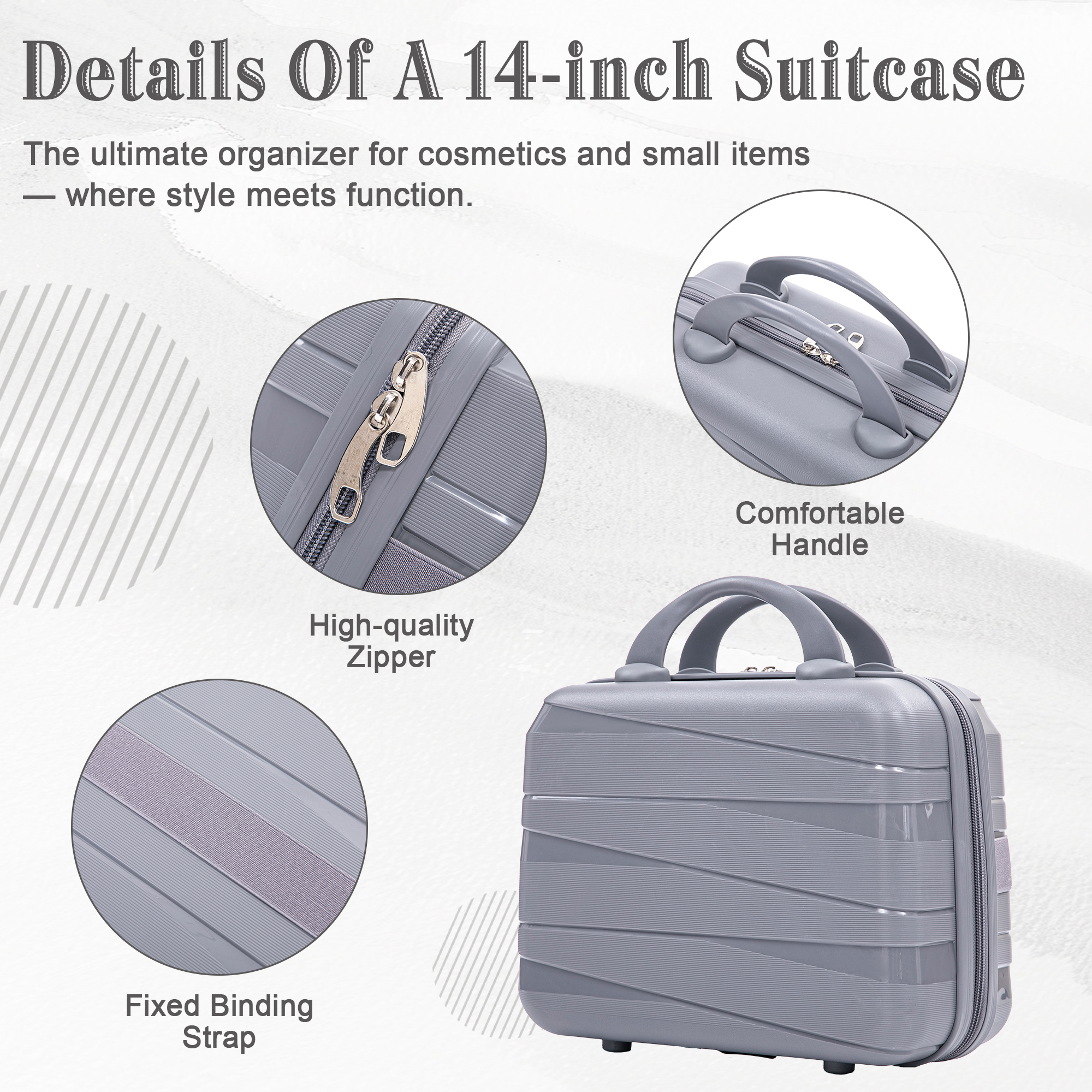 Product Name:14″/20″/24″/28″ 4 pcs/set in PP Spinner Wheel Luggage, Carry on Suitcase, Iron Pull Rod, Combination Password Lock, 14″ Cosmetic Case (Light Gray)