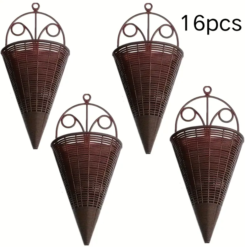 Set of 16 wall-mounted flower pots ideal for space-saving vertical gardening and decorative outdoor or indoor displays.