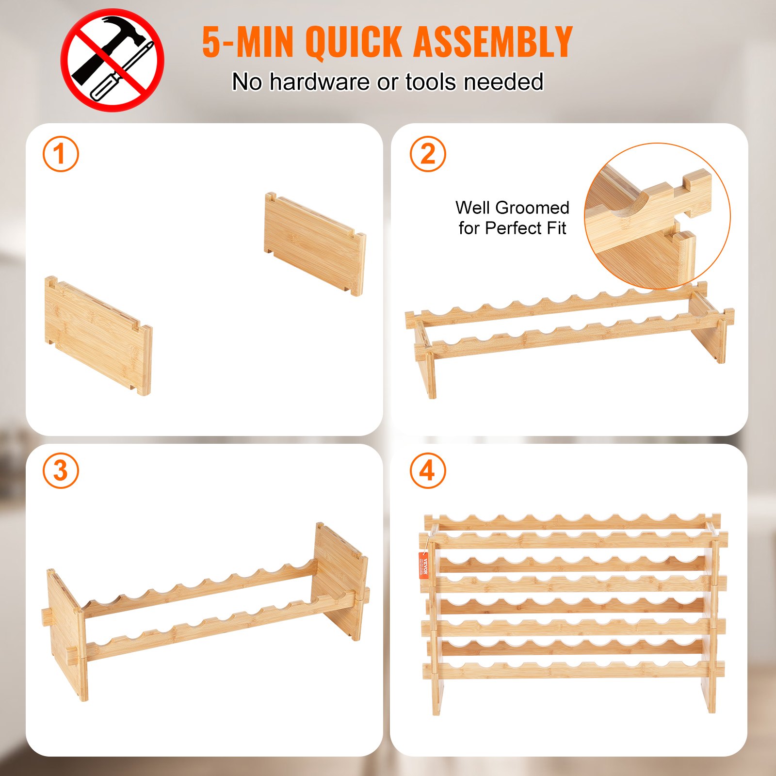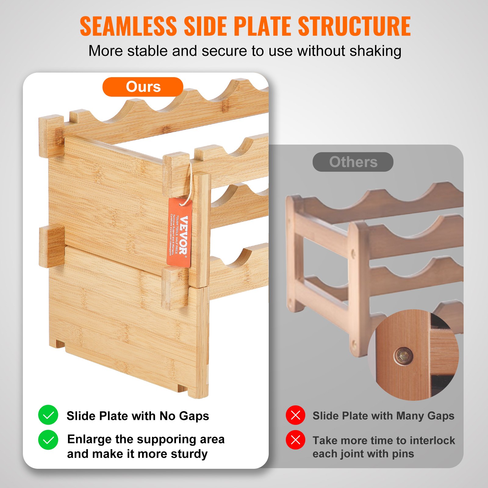 This 18-bottle wine rack features a modular, stackable design constructed from solid bamboo wood, offering a natural finish that complements any space. The 2-tier freestanding structure provides sturdy and wobble-free storage for organizing and showcasing wines. Its compact floor-standing design is suitable for kitchens, bars, or cellars, enhancing both functionality and decor. Designed for efficient space utilization, this wine holder ensures easy access and safe storage of your wine collection.