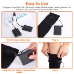 Battery-powered heated socks with adjustable heat levels, rechargeable design, and machine washable for indoor and outdoor use.