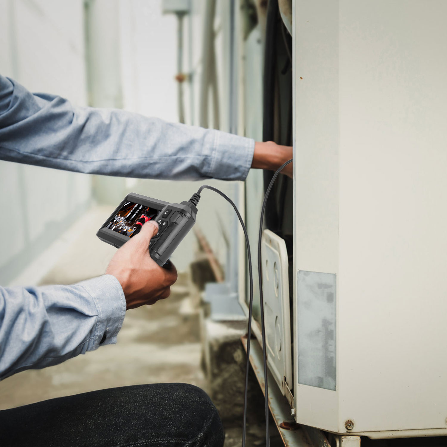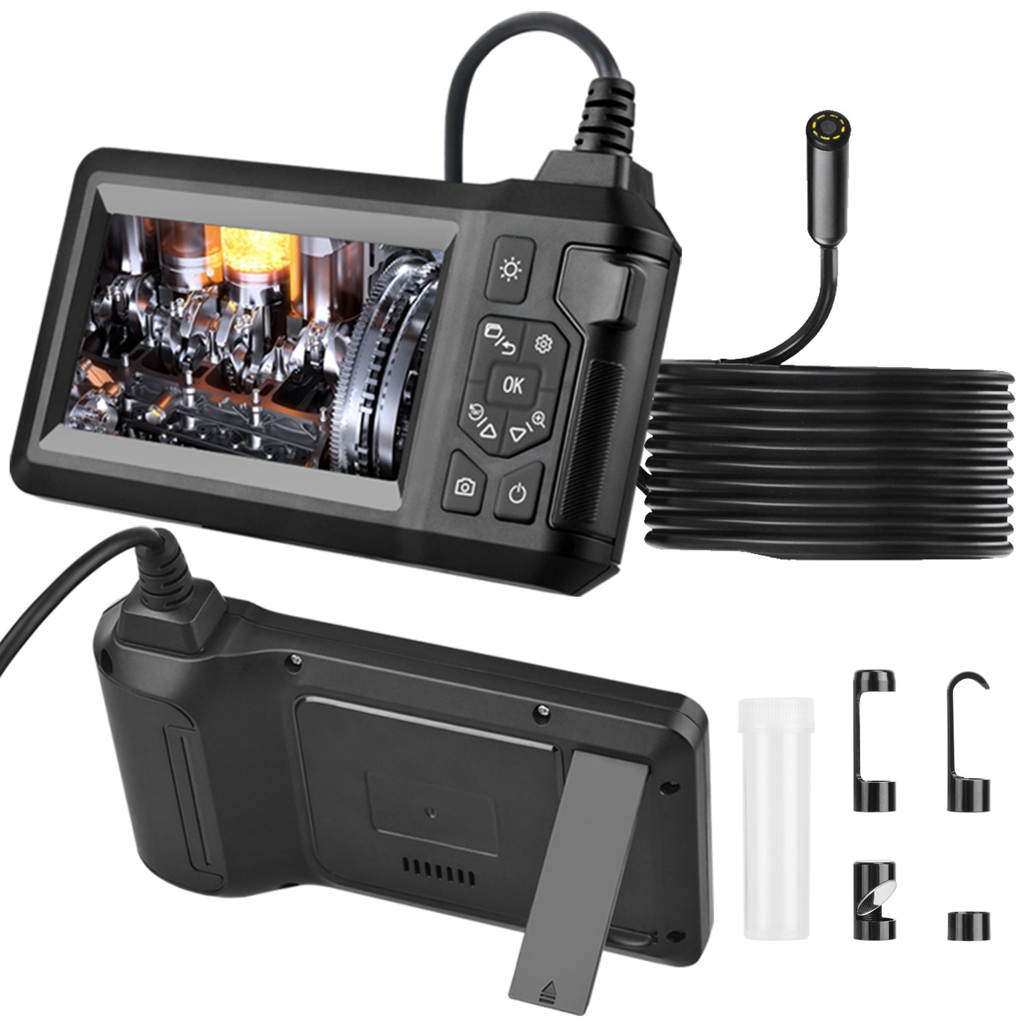 Durable 1080P endoscope with IP67 waterproof rating, 8 LED lights, 16.4ft semi-rigid cable, and 4.3-inch color display for precision inspections.
