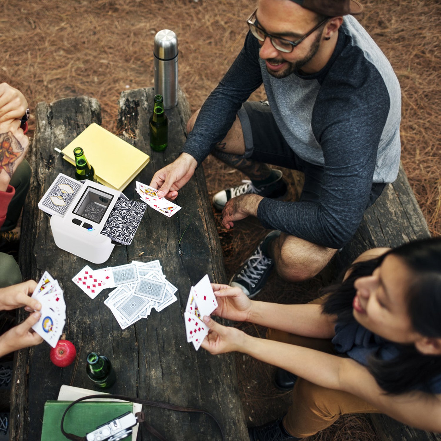 - *2000mAh Rechargeable Battery Card Shuffler*:Built in a 2000mAh rechargeable battery,the playing card shuffler can be used for days and able to shuffle 2300 decks. It operates at a noise level of around 70dB,maintaining a quiet and pleasant gaming environment.