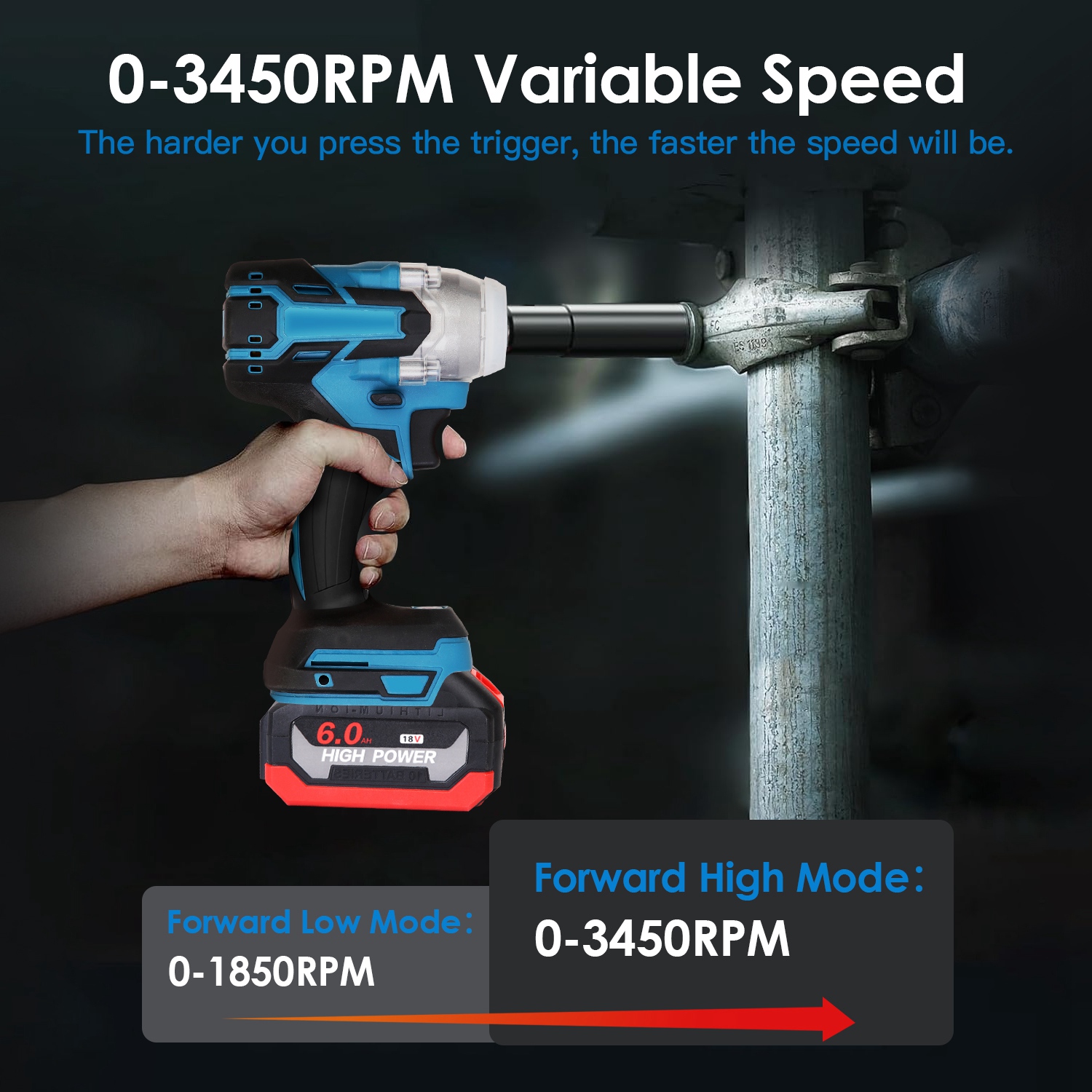 This 3-in-1 cordless electric impact wrench, drill, and screwdriver is equipped with a high-efficiency brushless motor delivering a maximum speed of 3450 RPM for versatile operation. Designed for professional and DIY applications, the tool includes variable speed settings for precise control. The package comes with two 6.0Ah rechargeable batteries ensuring extended runtime, alongside three sockets, three screwdriver bits, and three drill bits to cover a wide range of tasks. Compact and lightweight, this multi-functional tool offers convenience and power in a single device for enhanced productivity.