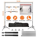 Durable 6.5 Plus 10ft adjustable backdrop stand with clamps and carrying bag, ideal for professional photo and video studio setups.
