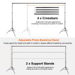 **ADJUSTABLE PHOTOGRAPHY BACKDROP STAND*:Our backdrop stand consists of 4pcs 2.5ft-length crossbars which the length can be adjusted from 5ft to 10ft after assembly and 2pcs support stands which the length can be adjusted from 2.5ft to 6.5ft after assembly.