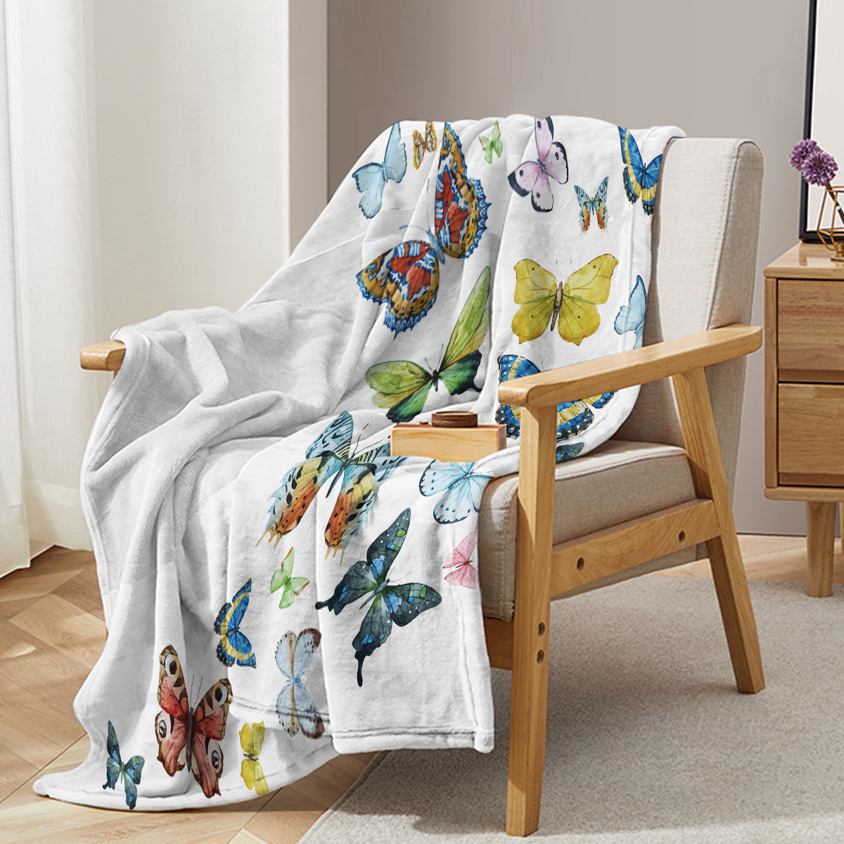Soft, skin-friendly butterfly print blanket. Ideal for multi-scene warmth and decor year-round.