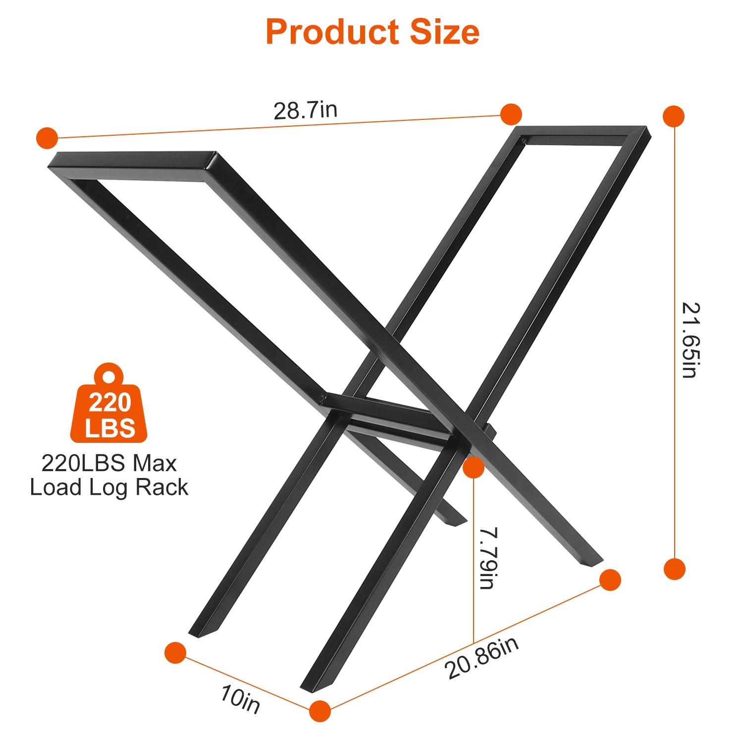 This single-piece firewood log rack is constructed from sturdy steel, offering a robust storage solution for wood logs up to 220 pounds. Its X-shaped design ensures secure stacking and easy access, making it ideal for organizing firewood beside fireplaces or firepits. The durable construction provides long-lasting support and stability, helping to keep wood dry and neatly stored. Designed for both indoor and outdoor use, this lumber storage rack enhances firewood management with a compact and efficient structure.