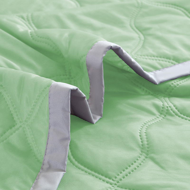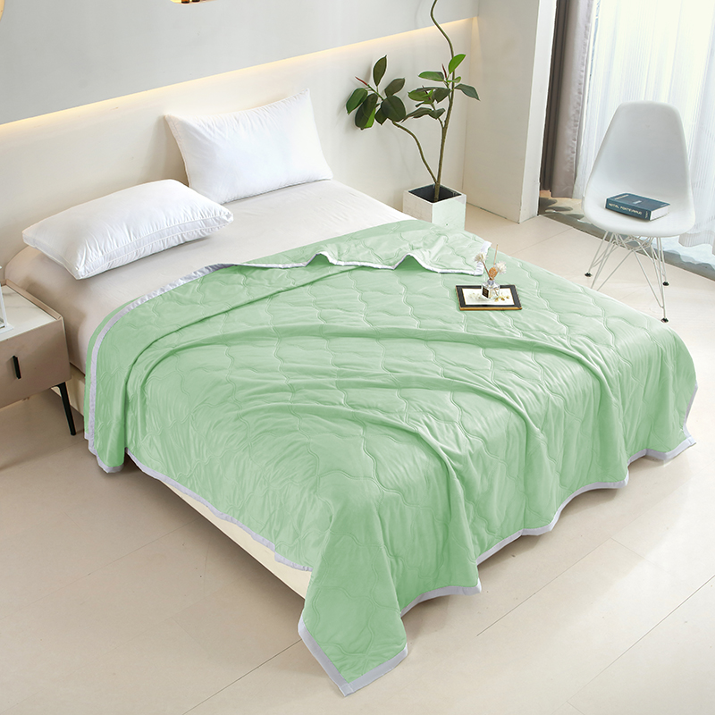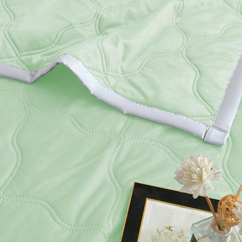 Breathable, reversible thin quilt featuring a soundwave pattern. Perfect lightweight bedding for hot sleepers, travel, office, and camping.