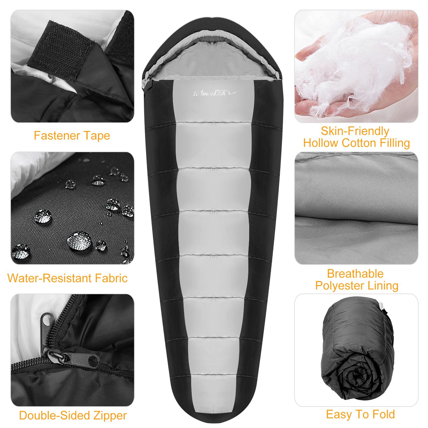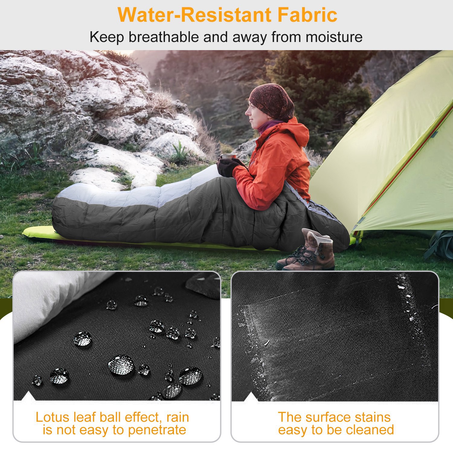 Durable mummy sleeping bag for adults, soft, thick, water and moisture-resistant, ideal for camping in spring, autumn, and winter.