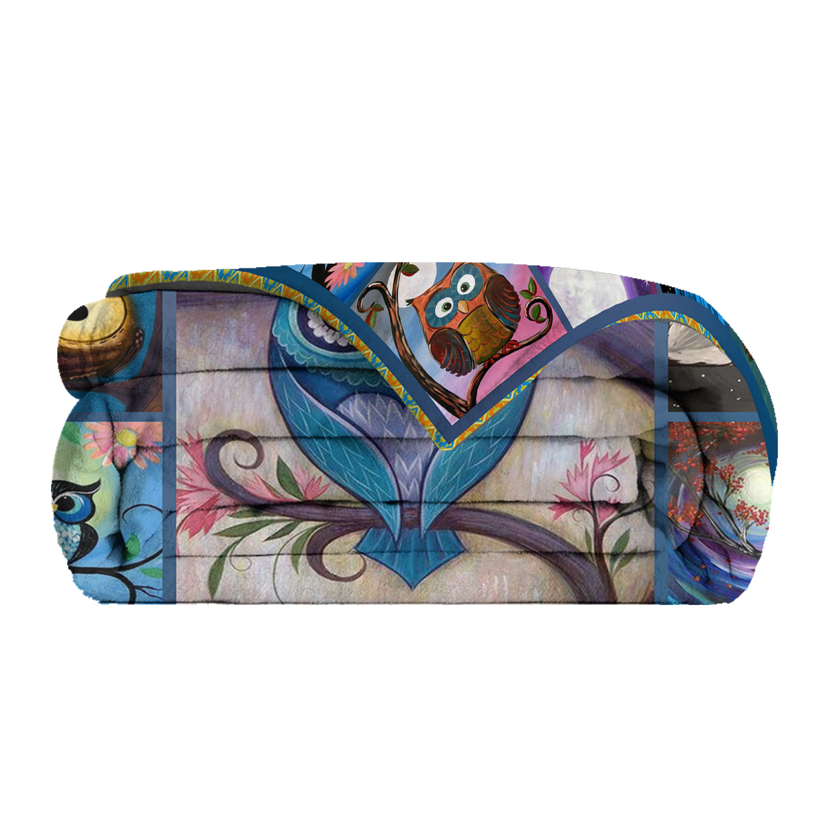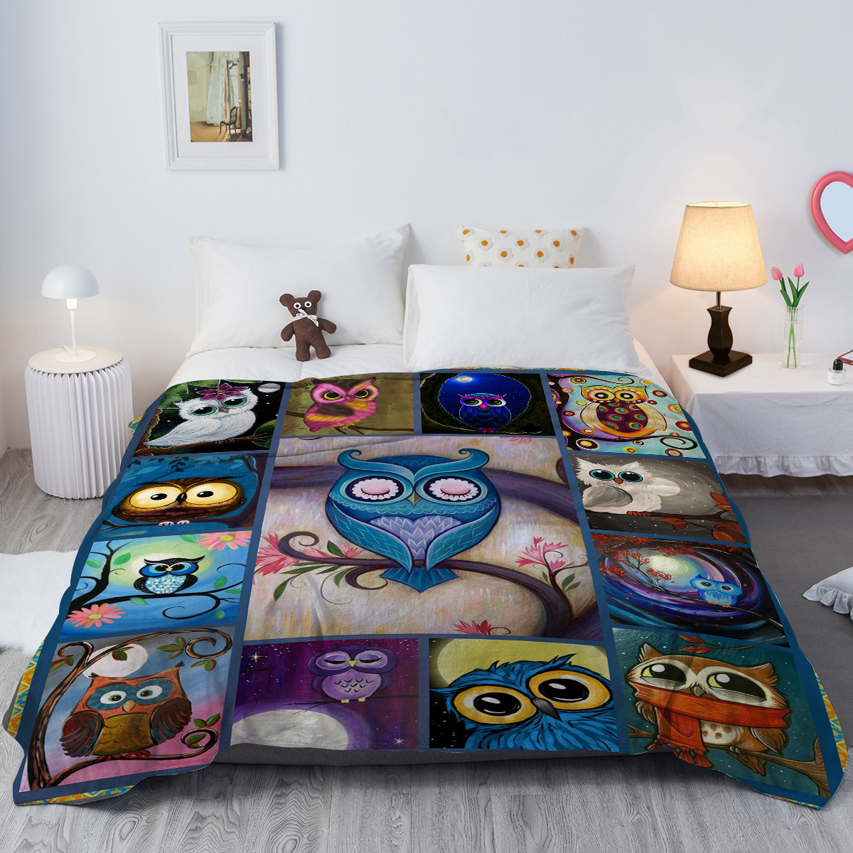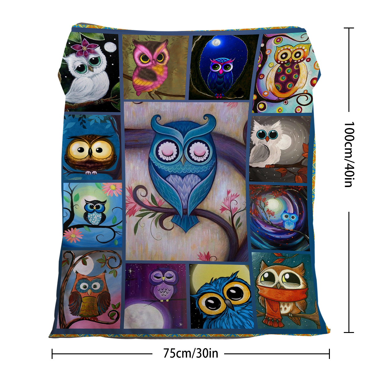 Soft, fluffy flannel blanket with owl print, ideal for outdoor, beach, camping, sofa, office, and nap use.