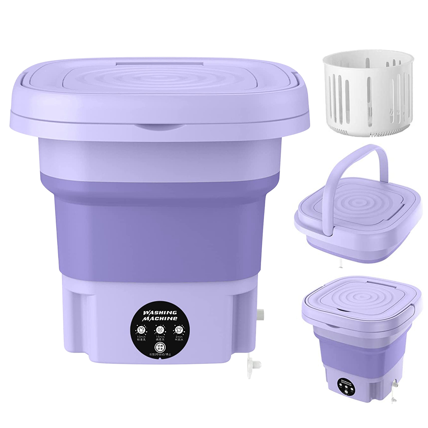 This compact portable washing machine features a foldable design and a detachable drain basket, allowing easy storage and convenient drainage. Equipped with three washing modes, it efficiently handles delicate items such as underwear, socks, towels, and baby clothes. Its electric operation ensures thorough cleaning with minimal effort, making it ideal for small spaces and travel. The lightweight construction facilitates portability while maintaining durability and reliable performance.
