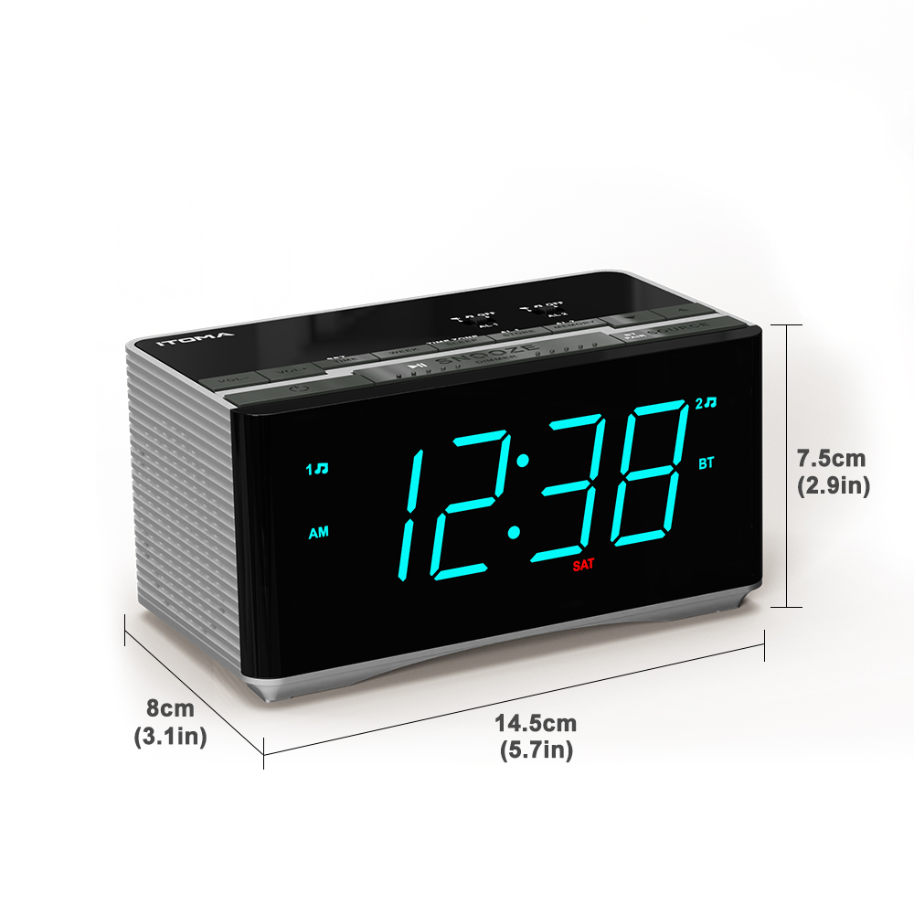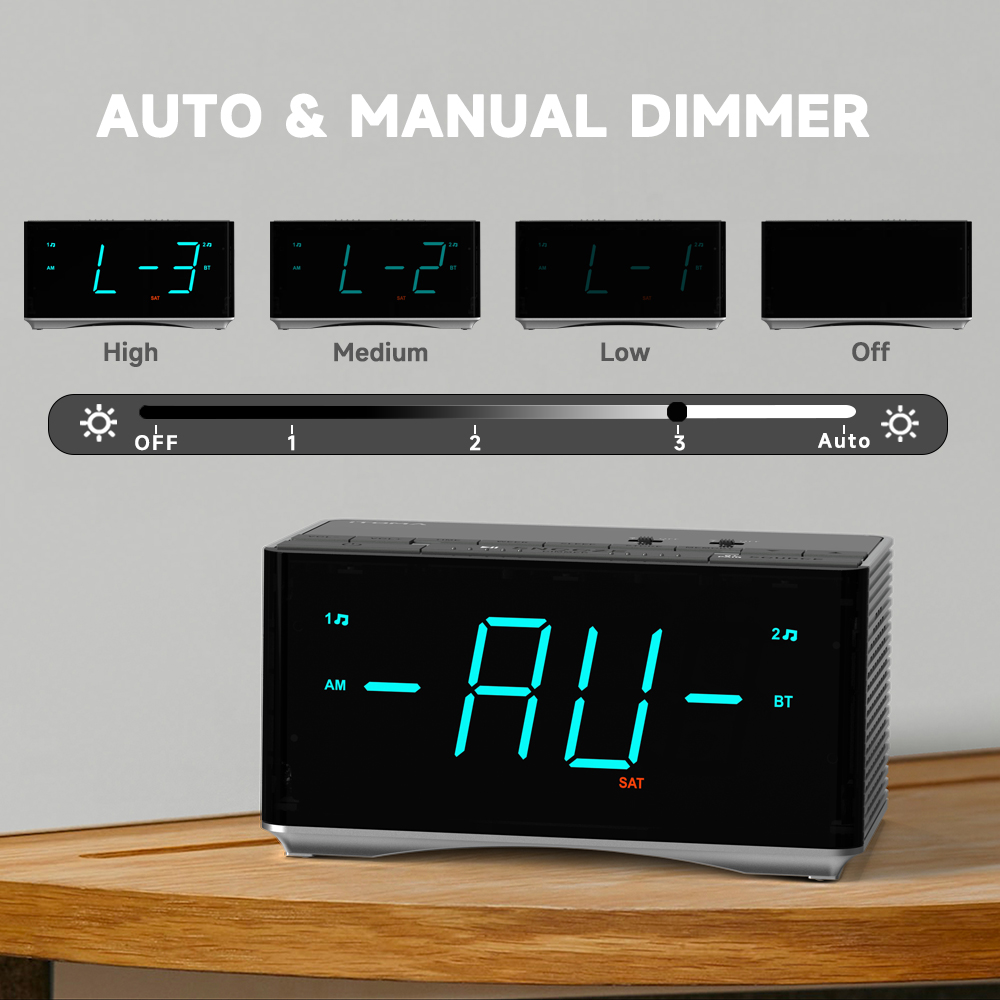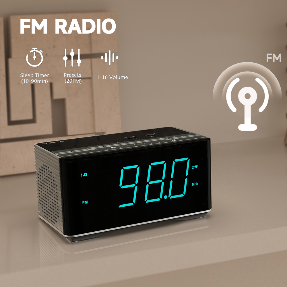This wireless alarm clock radio features integrated stereo speakers and an FM radio tuner for high-quality sound and entertainment. It includes dual alarms for flexible time management, along with a built-in USB charger to power your devices conveniently. The adjustable dimmer allows customization of the display brightness, making it suitable for bedroom, office, or desk environments. Its compact design combines functionality and modern technology to enhance daily routines with ease and reliability.