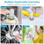 This cordless electric handheld spin scrubber features two adjustable rotating speeds and comes with three interchangeable cleaning brushes. Designed for versatile use, it effectively cleans kitchens, bathtubs, sinks, tiles, and dishes with minimal effort. The rechargeable battery provides convenient cordless operation, enhancing mobility and ease of use. Its ergonomic design ensures comfort during extended cleaning sessions, making it an efficient tool for maintaining hygiene in various household areas.