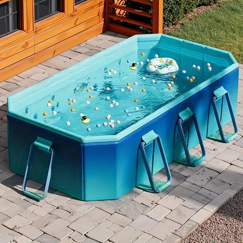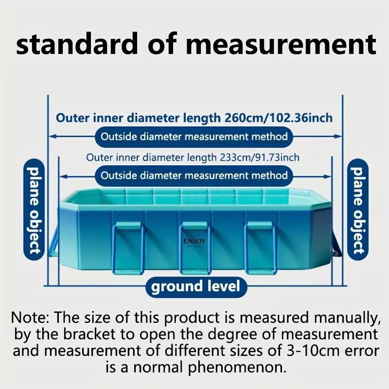 This 2.6-meter swimming pool features a soothing glacier blue color, providing a stylish and elegant addition to your outdoor space. Designed without the need for inflation, it ensures quick setup and maximum convenience. The leak-proof construction guarantees durability and water retention for extended use. Perfectly suited for family water games and offering a cool retreat during hot summer days, this pool combines functionality with refined aesthetics, making it an essential choice for recreational water activities.