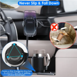 Dual-function car cup holder designed to securely hold your mobile phone and beverage during travel.