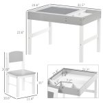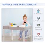 This 2-in-1 kids activity table with storage offers a multifunctional space designed for children’s play, crafts, studying, and snack time. The gray table features an integrated storage compartment to keep toys and building blocks organized, promoting a tidy playroom environment. The set includes a matching toddler chair, providing a comfortable and suitable seating arrangement for young children. Constructed with durable materials, this activity table supports various activities such as building block play, arts and crafts projects, and homework, making it an ideal addition to any child’s play area or study space.