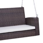 Durable 2-person hanging swing bench designed for comfort and style in outdoor spaces. Ideal for gardens and patios.