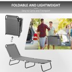 Wish you could pack up the comfort of the resort and bring it with you on the road? You’re a step closer. Outsunny has a folding lounge chair so you can lay back in the sun at the beach, while camping, or at the pool. It features a reclining backrest with five positions; pick your favorite tanning angle and get the most out of your summer snooze. Made with durable, outdoor ready oxford cloth, it’s built to handle the coming camping trip. Features: – For two people to tan or lounge around the pool together on – Back reclines to 5 different positions to find the perfect tanning angle – Breathable oxford fabric is quick-drying, and stays cool in summer – Load-bearing, water-safe powder-coated steel – Foldable design to make transport easy – No assembly required Specification: – Color: Wine Red, Black Matte Frame – Materials: Steel, Oxford Fabric – Flat Dimensions: 74″ L x 22″ W x 11″ H – Backrest Heights: 11″, 20.5″, 26.5″, 30.75″, 33″ H – Folded Dimension: 27.5″ L x 22.5″ W x 5″ H – Weight Capacity: 265 lbs. – Item Label: 84G-182V00WR Package Includes: – 2 x Sun Lounger – 1 x Manual Wish you could pack up the comfort of the resort and bring it with you on the road? Features: – For two people to tan or lounge around the pool together on – Back reclines to 5 different positions to find the perfect tanning angle – Breathable oxford fabric is quick-drying, and stays cool in summer – Load-bearing, water-safe powder-coated steel – Foldable design to make transport easy – No assembly required Specification: – Color: Black, Black Matte Frame – Materials: Steel, Oxford Fabric – Flat Dimensions: 74″ L x 22″ W x 11″ H – Backrest Heights: 11″, 20.5″, 26.5″, 30.75″, 33″ H – Folded Dimension: 27.5″ L x 22.5″ W x 5″ H – Weight Capacity: 265 lbs. – Item Label: 84G-182V00BK Package Includes: – 2 x Sun Lounger – 1 x Manual Wish you could pack up the comfort of the resort and bring it with you on the road? Features: – For two people to tan or lounge around the pool together on – Back reclines to 5 different positions to find the perfect tanning angle – Breathable oxford fabric is quick-drying, and stays cool in summer – Load-bearing, water-safe powder-coated steel – Foldable design to make transport easy – No assembly required Specification: – Color: Beige, Black Matte Frame – Materials: Steel, Oxford Fabric – Flat Dimensions: 74″ L x 22″ W x 11″ H – Backrest Heights: 11″, 20.5″, 26.5″, 30.75″, 33″ H – Folded Dimension: 27.5″ L x 22.5″ W x 5″ H – Weight Capacity: 265 lbs. – Item Label: 84G-182V00BG Package Includes: – 2 x Sun Lounger – 1 x Manual Wish you could pack up the comfort of the resort and bring it with you on the road? Features: – For two people to tan or lounge around the pool together on – Back reclines to 5 different positions to find the perfect tanning angle – Breathable oxford fabric is quick-drying, and stays cool in summer – Load-bearing, water-safe powder-coated steel – Foldable design to make transport easy – No assembly required Specification: – Color: Dark Gray, Black Matte Frame – Materials: Steel, Oxford Fabric – Flat Dimensions: 74″ L x 22″ W x 11″ H – Backrest Heights: 11″, 20.5″, 26.5″, 30.75″, 33″ H – Folded Dimension: 27.5″ L x 22.5″ W x 5″ H – Weight Capacity: 265 lbs. – Item Label: 84G-182V00CG Package Includes: – 2 x Sun Lounger – 1 x Manual.