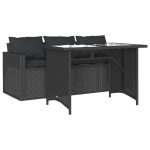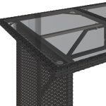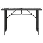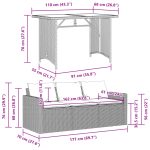 - Material: PE rattan, solid acacia wood with oil finish, PE rattan, powder-coated steel, PE rattan, powder-coated steel, tempered glass