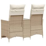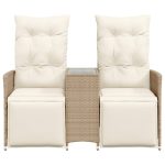 Comfortable 2-seater garden sofa in beige poly rattan with adjustable backrests and integrated table for outdoor relaxation.