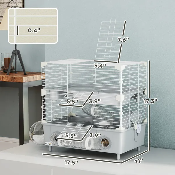 Spacious 2-tier hamster cage featuring sand bathroom, running wheel, and water bottle for small pet comfort and activity.