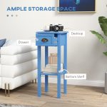Add a beautiful accent piece to your home while giving yourself extra storage with this narrow end table from HOMCOM. Place the end table in your living room or hallway to hold items you use daily or as a decorative display shelf. The drawer allows you to store small objects without getting lost. It’s compact enough to fit between those tiny spaces between your couch or the wall. Add elegance and some extra storage with HOMCOM. Features: – Slim, elegant design fits well in rooms with small spaces – Open bottom shelf, drawer, and flat tabletop for ample storage and display space – Lightweight for easy moving and relocating – Anti-toppling design for extra stability – Elevated base to protect from water spills – Assembly required Specification: – Color: Light Blue – Material: MDF Board – Overall Dimensions: 11.75″ L x 11.75″ W x 29.5″ H – Drawer Inner Size: 7.25″ W x 9.25″ D x 3.25″ H – Bottom Shelf Size: 10.75″ W x 10.75″ D x 12.75″ H – Bottom Shelf to Floor: 9.75″ H – Weight Capacity: 33 lbs. (total), 11 lbs. (drawer), 11 lbs. (shelf) – Item Label: 838-130V80LB Package Includes: – 1 x Side Table – 1 x Manual Add a beautiful accent piece to your home while giving yourself extra storage with this narrow end table from HOMCOM. Features: – Slim, elegant design fits well in rooms with small spaces – Open bottom shelf, drawer, and flat tabletop for ample storage and display space – Lightweight for easy moving and relocating – Anti-toppling design for extra stability – Elevated base to protect from water spills – Assembly required Specification: – Color: Black – Material: MDF Board – Overall Dimensions: 11.75″ L x 11.75″ W x 29.5″ H – Drawer Inner Size: 7.25″ W x 9.25″ D x 3.25″ H – Bottom Shelf Size: 10.75″ W x 10.75″ D x 12.75″ H – Bottom Shelf to Floor: 9.75″ H – Weight Capacity: 33 lbs. (shelf) – Item Label: 838-130V81BK Package Includes: – 2 x Side Table – 1 x Manual Add a beautiful accent piece to your home while giving yourself extra storage with this narrow end table from HOMCOM. Features: – Slim, elegant design fits well in rooms with small spaces – Open bottom shelf, drawer, and flat tabletop for ample storage and display space – Lightweight for easy moving and relocating – Anti-toppling design for extra stability – Elevated base to protect from water spills – Assembly required Specification: – Color: Green – Material: MDF Board – Overall Dimensions: 11.75″ L x 11.75″ W x 29.5″ H – Drawer Inner Size: 7.25″ W x 9.25″ D x 3.25″ H – Bottom Shelf Size: 10.75″ W x 10.75″ D x 12.75″ H – Bottom Shelf to Floor: 9.75″ H – Weight Capacity: 33 lbs. (shelf) – Item Label: 838-130V80GN Package Includes: – 1 x Side Table – 1 x Manual Add a beautiful accent piece to your home while giving yourself extra storage with this narrow end table from HOMCOM. Features: – Slim, elegant design fits well in rooms with small spaces – Open bottom shelf, drawer, and flat tabletop for ample storage and display space – Lightweight for easy moving and relocating – Anti-toppling design for extra stability – Elevated base to protect from water spills – Assembly required Specification: – Color: Gray – Material: MDF Board – Overall Dimensions: 11.75″ L x 11.75″ W x 29.5″ H – Drawer Inner Size: 7.25″ W x 9.25″ D x 3.25″ H – Bottom Shelf Size: 10.75″ W x 10.75″ D x 12.75″ H – Bottom Shelf to Floor: 9.75″ H – Weight Capacity: 33 lbs. (shelf) – Item Label: 838-130V81GY Package Includes: – 2 x Side Table – 1 x Manual Add a beautiful accent piece to your home while giving yourself extra storage with this narrow end table from HOMCOM. Features: – Slim, elegant design fits well in rooms with small spaces – Open bottom shelf, drawer, and flat tabletop for ample storage and display space – Lightweight for easy moving and relocating – Anti-toppling design for extra stability – Elevated base to protect from water spills – Assembly required Specification: – Color: Coffee – Material: MDF Board – Overall Dimensions: 11.75″ L x 11.75″ W x 29.5″ H – Drawer Inner Size: 7.25″ W x 9.25″ D x 3.25″ H – Bottom Shelf Size: 10.75″ W x 10.75″ D x 12.75″ H – Bottom Shelf to Floor: 9.75″ H – Weight Capacity: 33 lbs. (shelf) – Item Label: 838-130V80CF Package Includes: – 1 x Side Table – 1 x Manual.