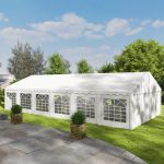 This 20′ x 40′ party tent offers ample space for various outdoor events, accommodating numerous guests comfortably. Crafted with durable, waterproof materials, it ensures protection against rain and sunlight, making it suitable for diverse weather conditions. Designed for easy assembly, the tent features a sturdy frame and a secure cover, providing reliable shelter for weddings, celebrations, and corporate events. Its versatile size and robust construction guarantee both practicality and aesthetic appeal for any occasion.