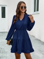 Elegant 2024 Fall/Winter women’s long-sleeve dress featuring a V-neck and lace-up design for stylish comfort.