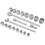 This comprehensive 21-piece socket set features a 3/4 inch drive and 6-point sockets in SAE sizes, designed to provide precise torque application for various mechanical tasks. The sockets are constructed for durability and reliable performance. All components are neatly organized within a durable red blow-molded case, ensuring convenient storage and easy portability for professional or personal use.