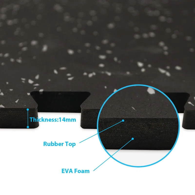 This set includes twelve 24 inch by 24 inch EVA foam interlocking tiles, providing a total coverage area of 48 square feet. Each tile measures 0.5 inches in thickness, offering cushioning and support ideal for gym and exercise environments. The interlocking design ensures a secure fit and simple installation, creating a stable and comfortable flooring surface. Manufactured from high-quality EVA foam, these tiles are durable, lightweight, and water-resistant, suitable for various workout settings. This modular flooring solution protects underlying surfaces, reduces noise, and enhances safety during physical activities.