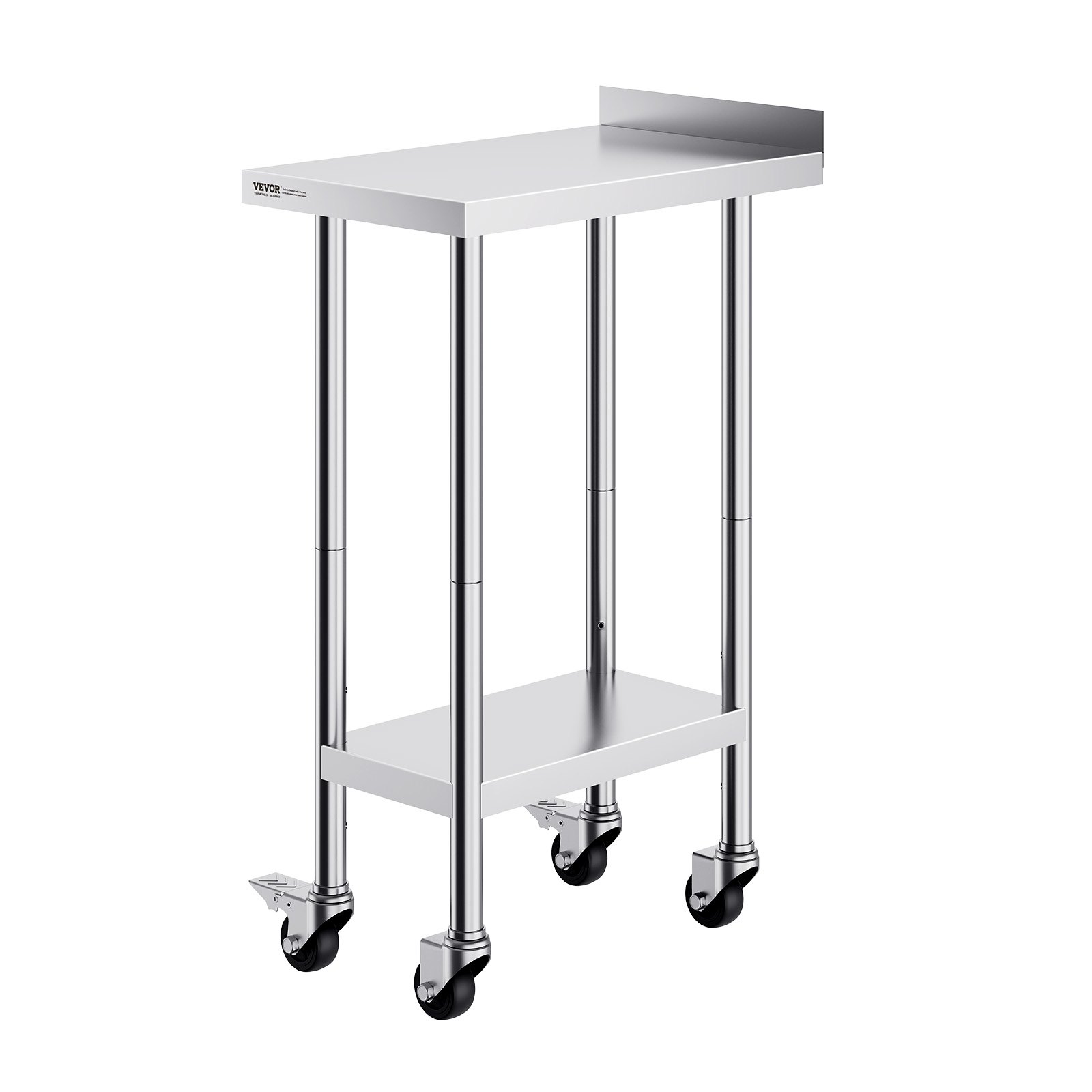 Durable 24x15x40 inch stainless steel worktable with adjustable height and casters for commercial kitchens, restaurants, and home use.