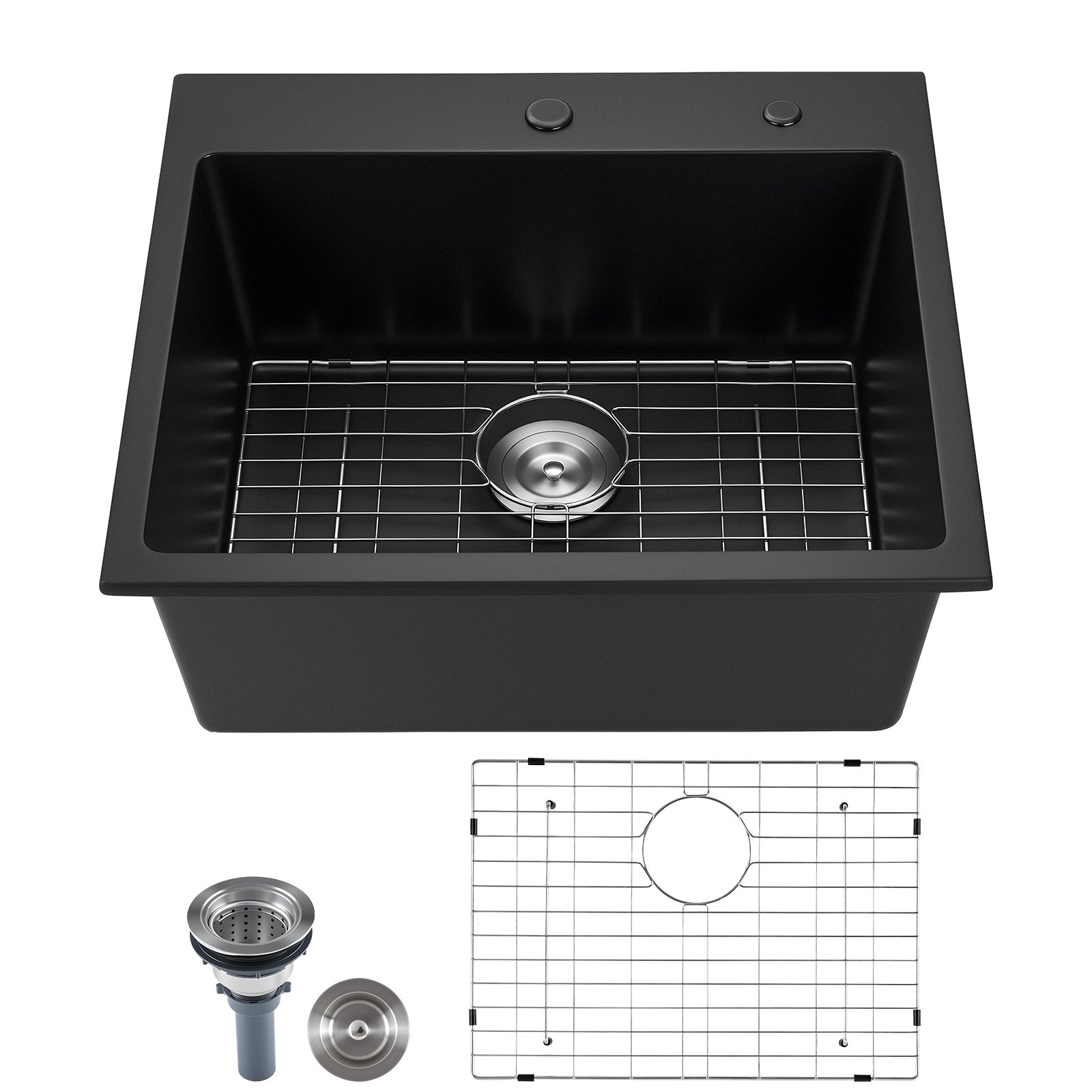 Durable 25-inch granite single bowl kitchen sink with top mount design, ideal for RVs and bars. Easy to install and maintain.