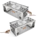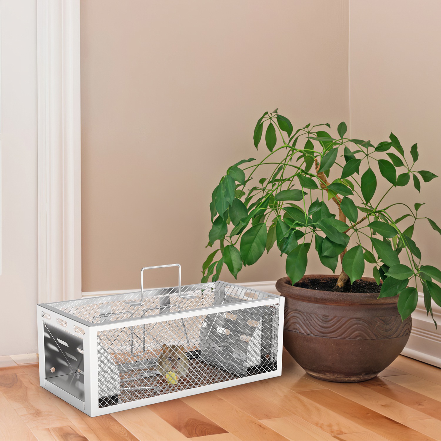 Reusable 2-door live animal rat trap set, 11.81×5.63×4.45 inches, made of galvanized iron, designed for humane and automatic continuous rodent capture.