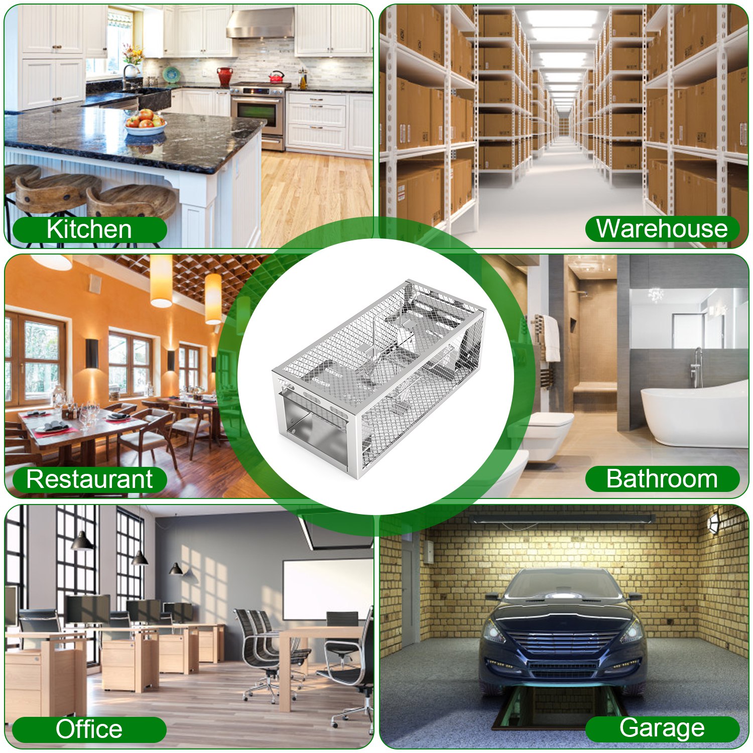 *Versatile for Indoors & Outdoors*:Measures 11.81×5.63×4.45in,lightweight and easy to carry. The portable handle also prevents scratches from mice. The .6×0.6cm diamond grid prevents captured mice from escaping while ensuring ventilation. The live animal trap cage can be used in various environments,both indoors and outdoors,making it suitable for a wide range of settings,including homes,gardens,warehouses,and commercial properties.