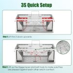 *3S Quick Setup*:The setup process is extremely simple and fast – just lift up the two doors,set the trigger lever and bait hook,and place the bait. This rodent trap cage allows users to get the trap ready in no time,saving effort and ensuring quick deployment.